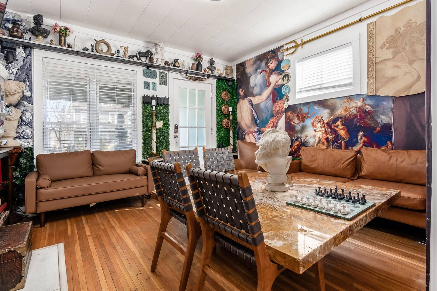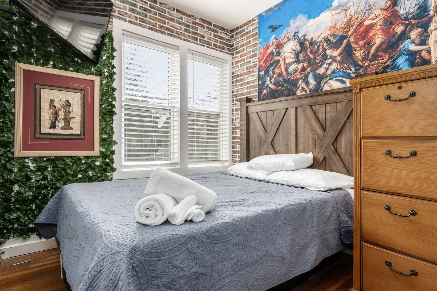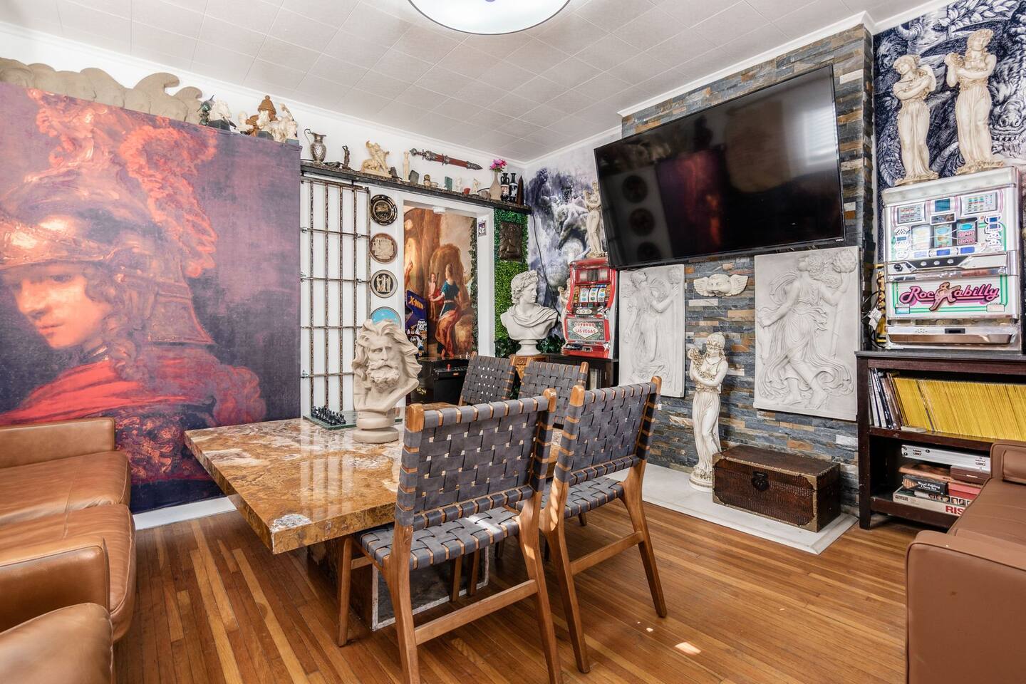 Retire like a conquering hero in your palace overlooking 4th St close to OSU. Your house includes free slot machines, a 75” smart TV, board games, video games, and arcade machines in the halls. We equipped every bedroom with a Smart TV and Smart Bed. Your kitchen includes all cooking essentials and the third floor includes a common study area with desks and personal computer. 5 minutes to the Short North/OSU/Downtown/Airport. 15% off stays of seven nights or more.