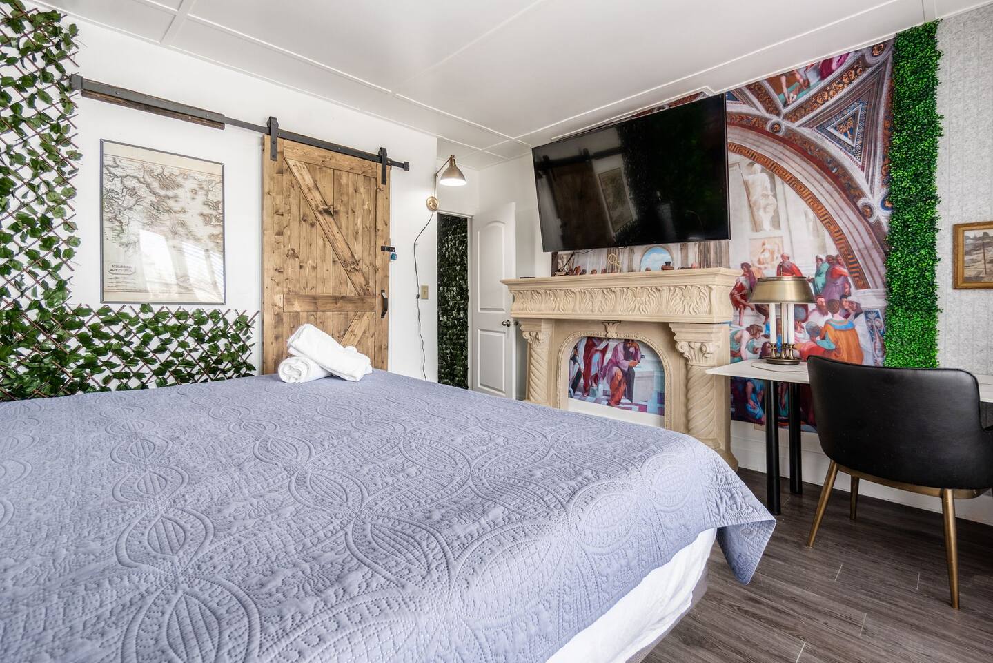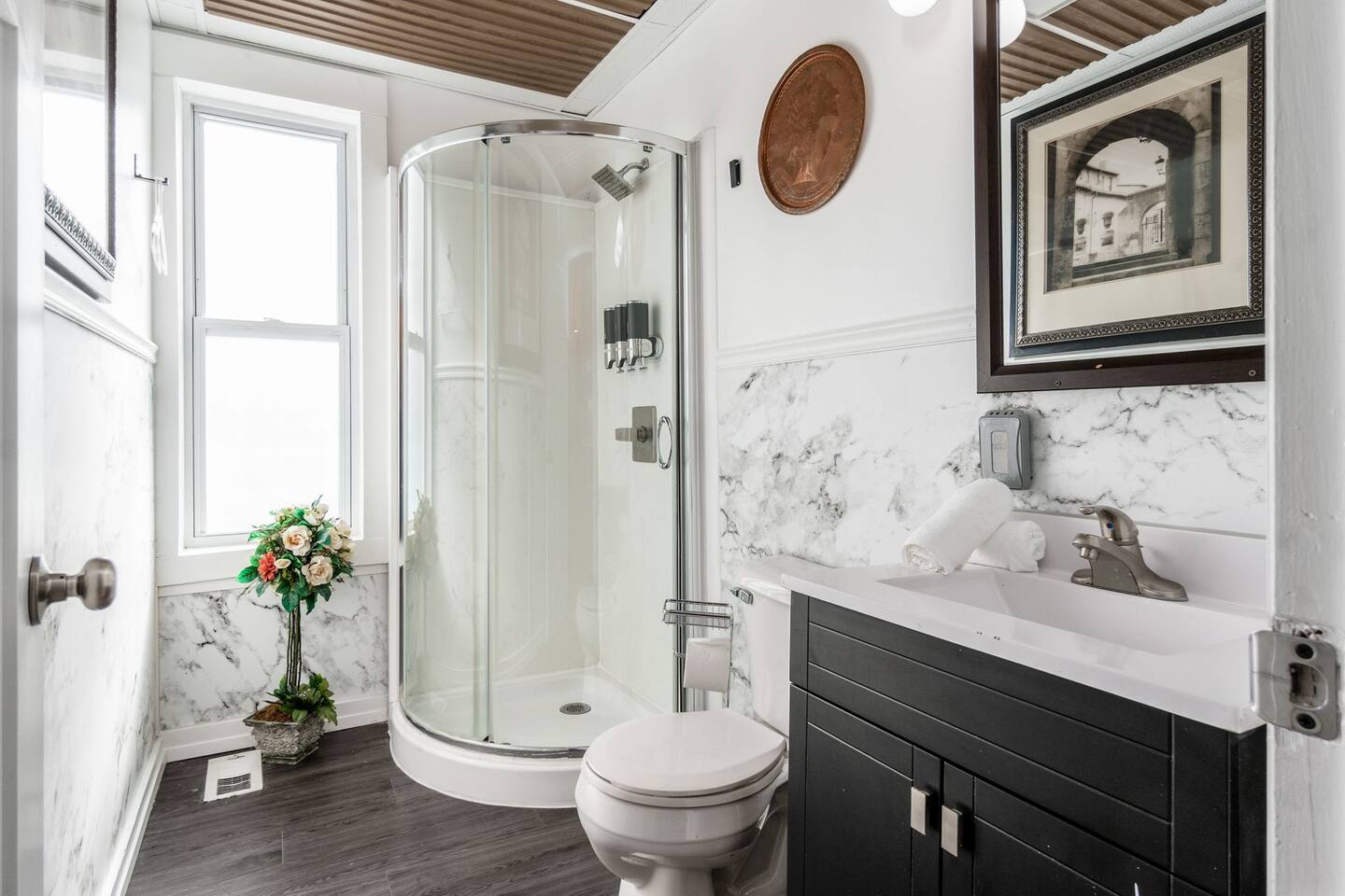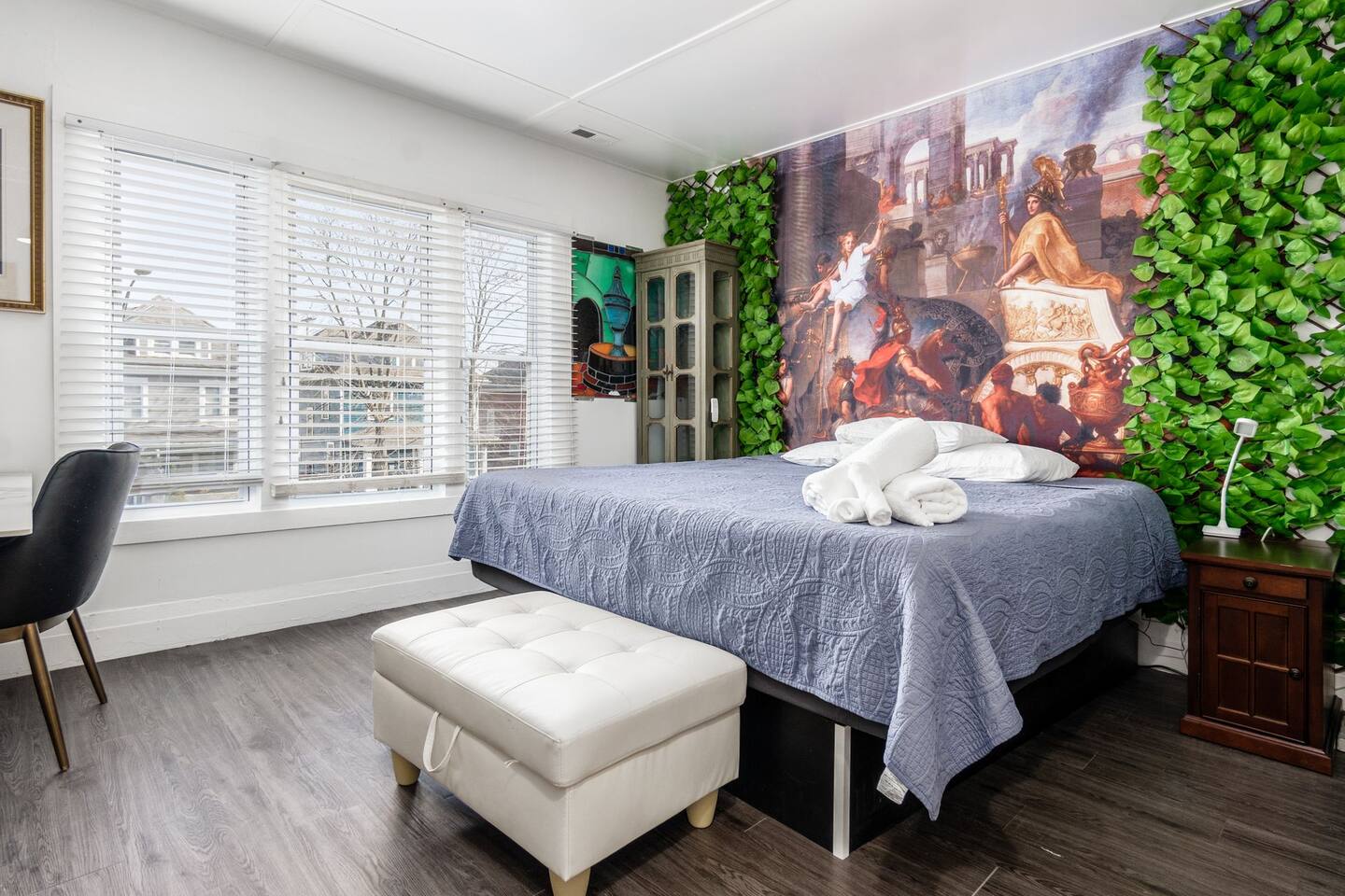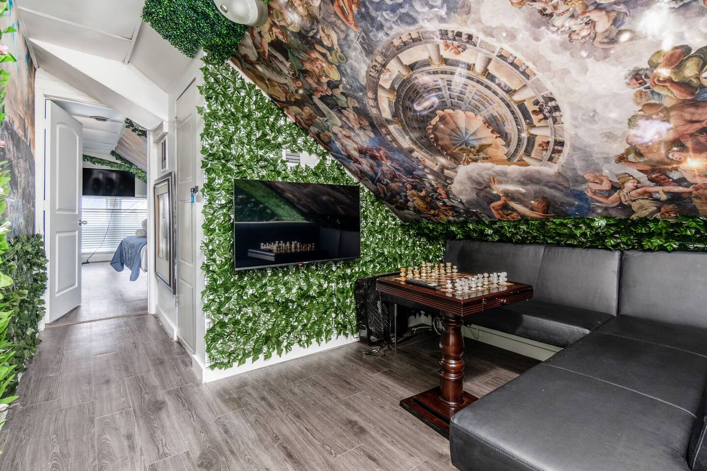 Retire like a conquering hero in your palace overlooking 4th St close to OSU. Your house includes free slot machines, a 75” smart TV, board games, video games, and arcade machines in the halls. We equipped every bedroom with a Smart TV and Smart Bed. Your kitchen includes all cooking essentials and the third floor includes a common study area with desks and personal computer. 5 minutes to the Short North/OSU/Downtown/Airport. 15% off stays of seven nights or more.