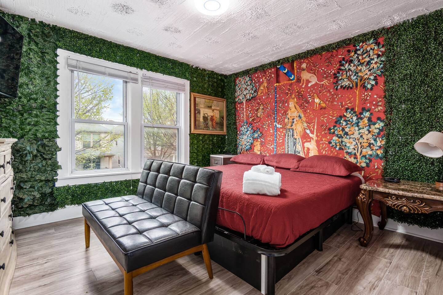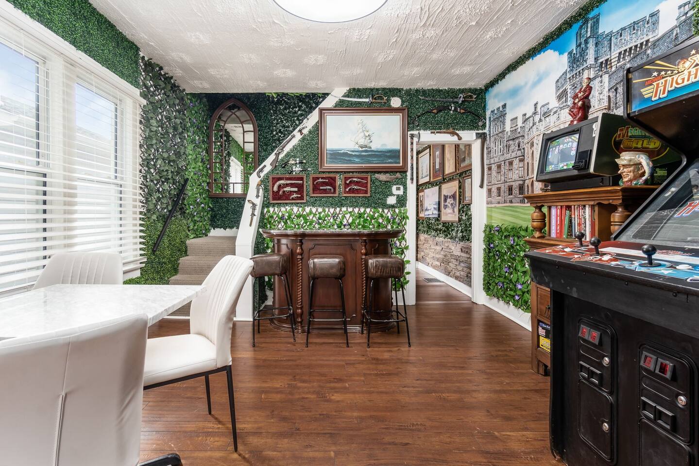 Welcome to the capital, your grace. Your living quarters include arcades, stage lighting, a quartz chef’s kitchen, and marble clad jet shower. Feeling knackered? Each bedroom boasts smart/adjustable beds and large 4k smart TVs. Your turfed lawns include dining tables, ping pong, and a propane grill all fortified via a 6' privacy fence opening to ample chariot parking. 5 min to OSU and downtown, 10 min to airport. Walk to fairgrounds/Short North. 15% off stays of a week or more.