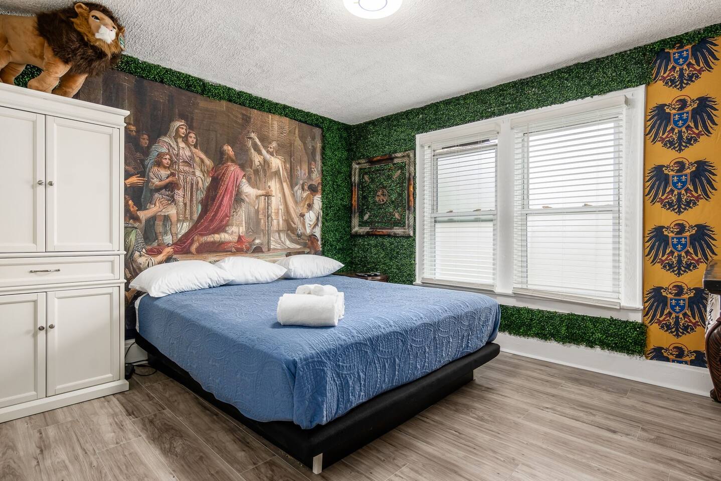 Soirée like it’s 1699 with arcades, books/games, stage lighting, fully equipped quartz chef’s kitchen and tiled jet shower. Musketeers everywhere. Sorry about Napoleon (not sorry). Smart/adjustable beds and large 4k smart TVs in every bedroom. Outdoor dining, ping pong, and propane grill all fortified via a 6' privacy fence opening to ample chariot parking. 5 min to OSU/downtown, 10 min to airport. Walk to fairgrounds/Short North. 15% off stays of a week or more.