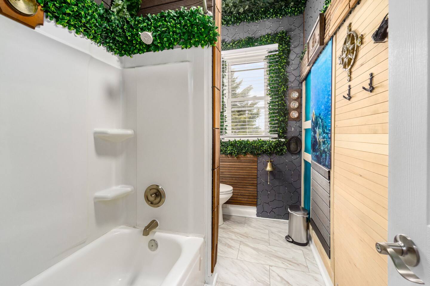 Welcome home, captain, to your 4 BR 1 BA pirate's lair in Southern Orchards, an urban neighborhood near Nationwide Children’s Hospital. 15% off stays of 7 nights or more. We equipped all bedrooms with Smart TVs and Smart Beds. The living room includes a Pirate Ship, Barcade, 65" TV, board games, and your captain's desk and computer. Grill out in your fenced and turfed yard, including a shaded pavilion, lounge seating, and outdoor dining amenities. 10 min to OSU/airport. Private parking.