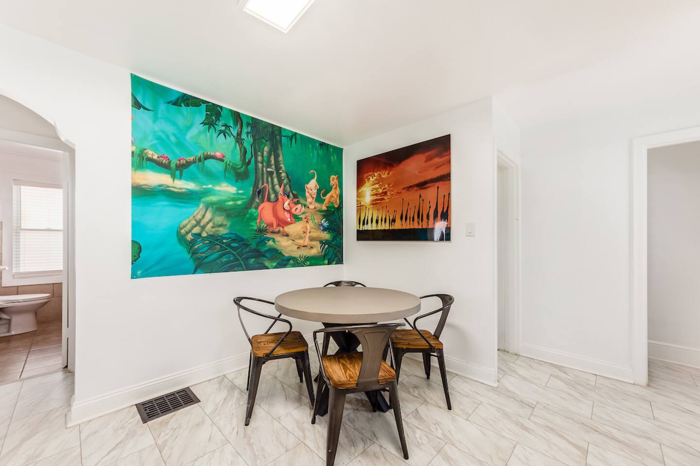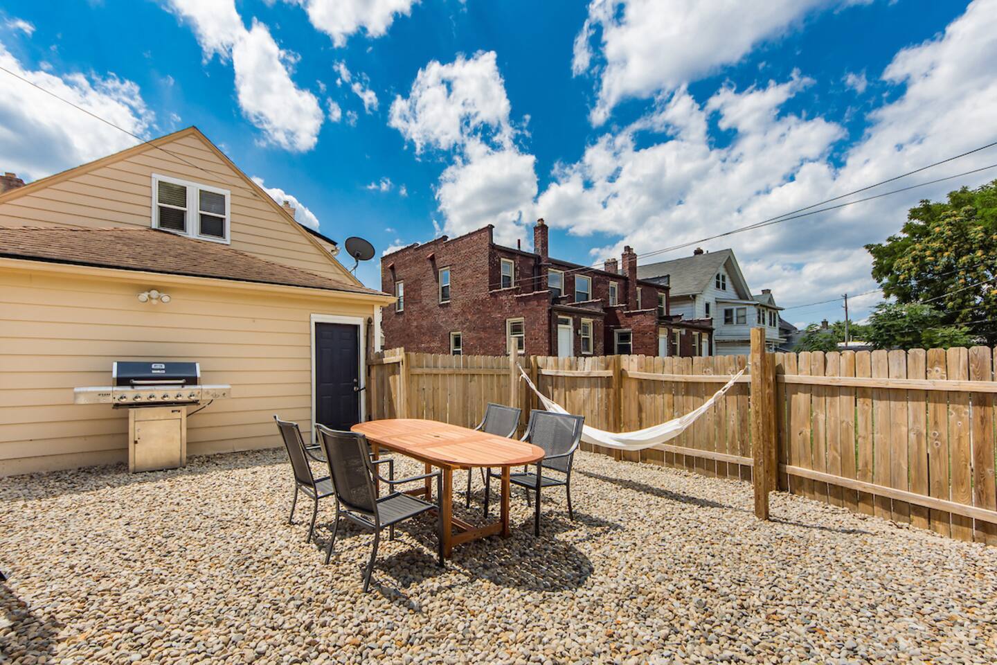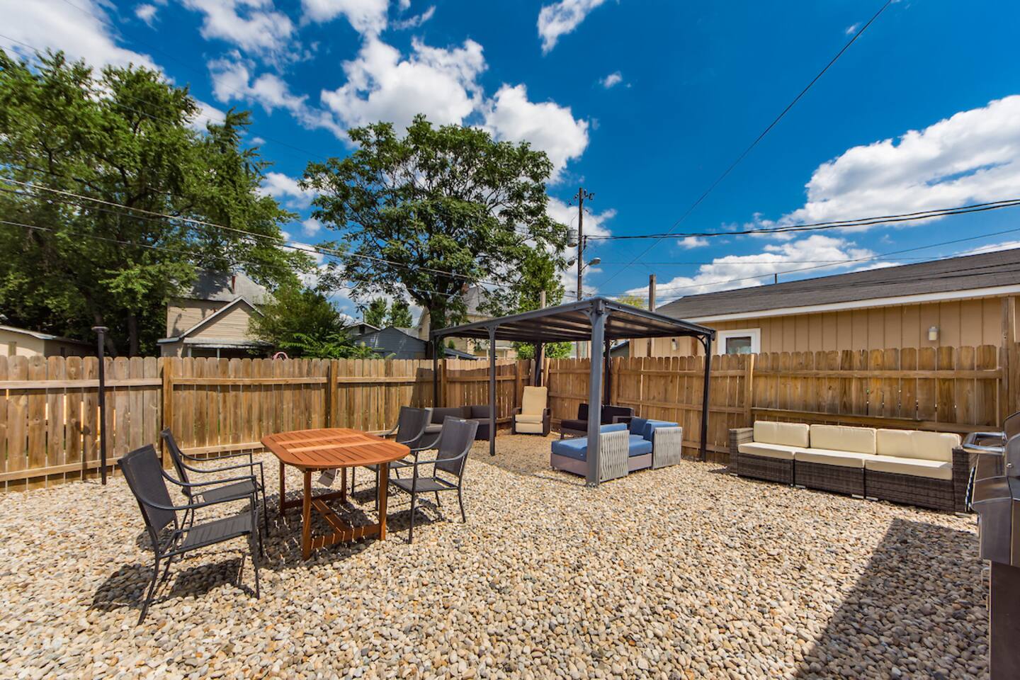 Welcome to your luxuriously outfitted lion's lair, located in Southern Orchards, a developing urban neighborhood near Nationwide Children’s Hospital. 15% off stays of seven nights or more. Your game room includes arcades, foosball, board games, and shuffleboard and converts to a 5th bedroom via the pull-out couch. We equipped every bedroom with 55-inch Smart TVs and Smart Beds. Your fenced backyard includes a grill, gazebo, outdoor dining and patio seating. 7 min to Nationwide/OSU/Airport.